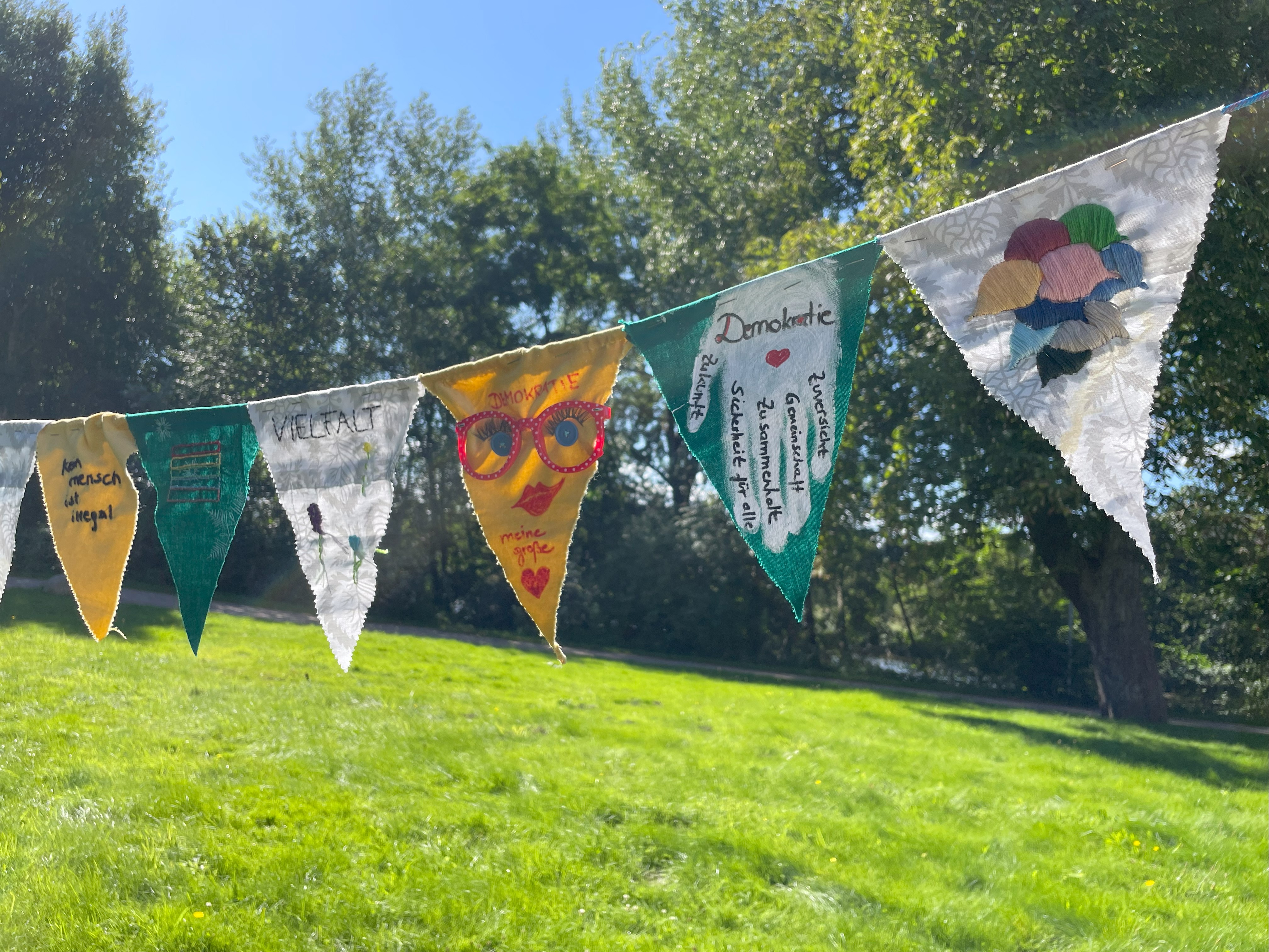 Gestalte Deinen eigenen Wimpel und werde Teil einer bunten Wimpelkette für den Kreis Schleswig-Flensburg. Im Schloss Gottorf bieten wir ein partizipatives Kunstprojekt für Menschen aller Altersgruppen und Kulturen an, um ein Zeichen für Vielfalt und Demokratie zu setzen. Wir werden Wimpel bemalen, besprühen oder benähen, den Stoff für die Wimpel gibt es vor Ort. Begleitet wird der Workshop von dem Künstler Rupprecht Matthies, der mit Ideen und Impulsen zur Seite steht. Die fertige Wimpelkette wird anschließend im öffentlichen Raum in Schleswig aufgehängt – als Symbol für Zusammenhalt und gelebte Demokratie.